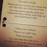 A demonstration of how using a washcloth to cleanse a body after death can empower and involve loved ones in ritual.
